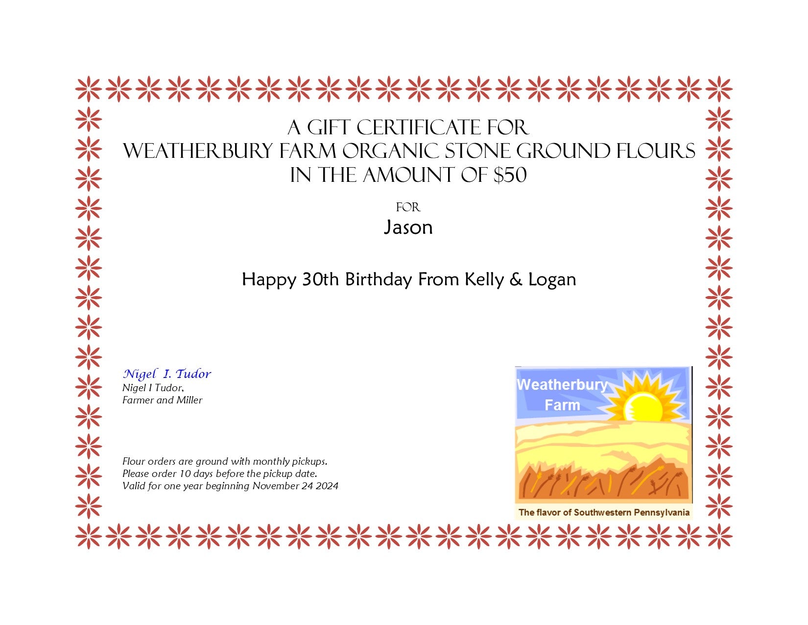 WEATHERBURY FARM GIFT CERTIFICATE
